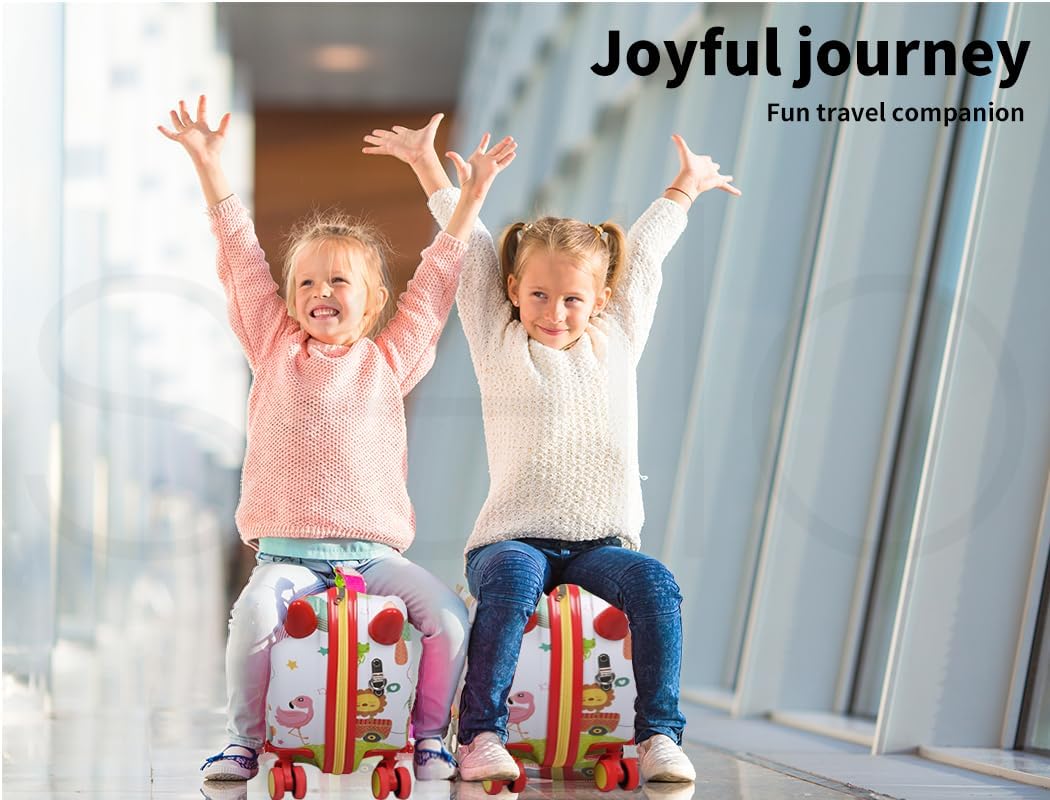 Dieser 2-in-1 Koffer besteht aus robustem ABS- und PC-Material und bietet eine wasserdichte und kratzfeste Hartschale zum Schutz des Gepäcks. Das clevere Design ermöglicht es Kindern, sich hinzusetzen und zu fahren – entweder indem sie sich mit den Füßen abstoßen oder mit dem beiliegenden Gurt gezogen werden. Mit einer Tragfähigkeit von 50 kg und einem großzügigen Stauraum von 28 Litern ist er ideal für Kleidung, Spielzeug und Snacks. Ausgestattet mit 360° schwenkbaren Vorderrädern und klappbaren Fußstützen sorgt er für leichte Manövrierbarkeit und Komfort für kleine Reisende.