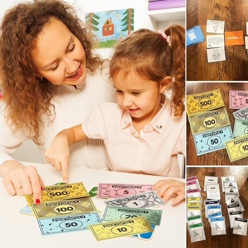 Musikbasiertes Brettspiel mit Songkarten und Monopolygeld für Spielabende